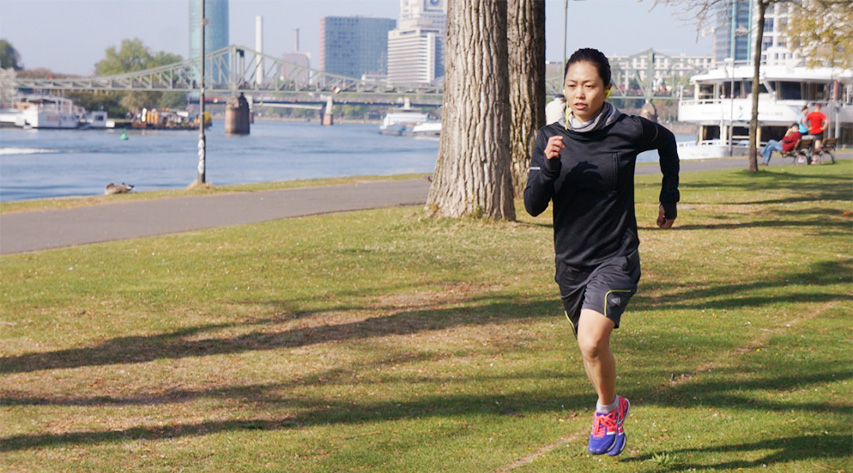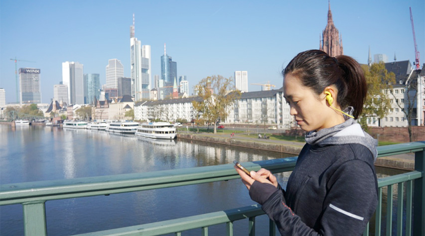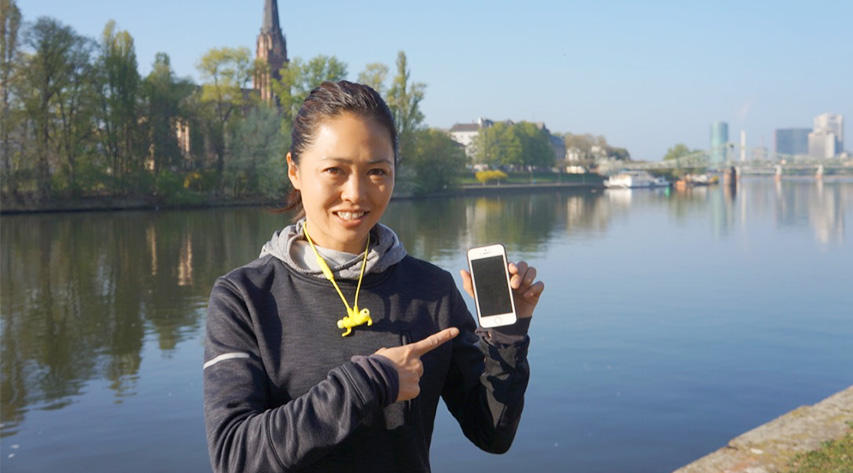 Corro relajadamente un rato con buen ánimo y después aumento el pitch en la siguiente canción. Subo un poco el ritmo. Al oír sonar mi canción favorita, me mentalizo. ¡El poder de la música es increíble! Hago el último esfuerzo con mi melodía favorita, y ¡acabo mi recorrido de 10 km!